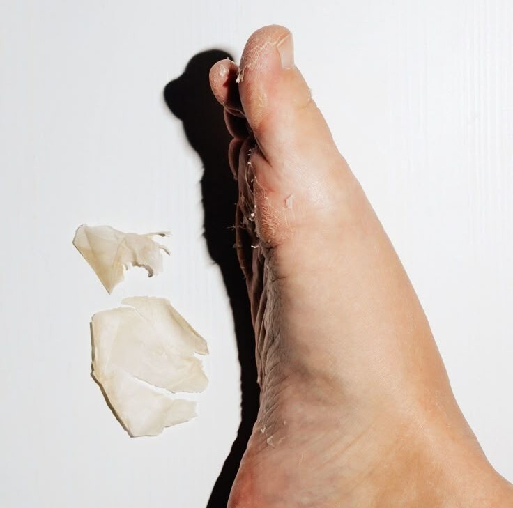 УТРОМ: присыпать в обувь дезинфицирующую пудру. (Akilein или Gehwol Med).